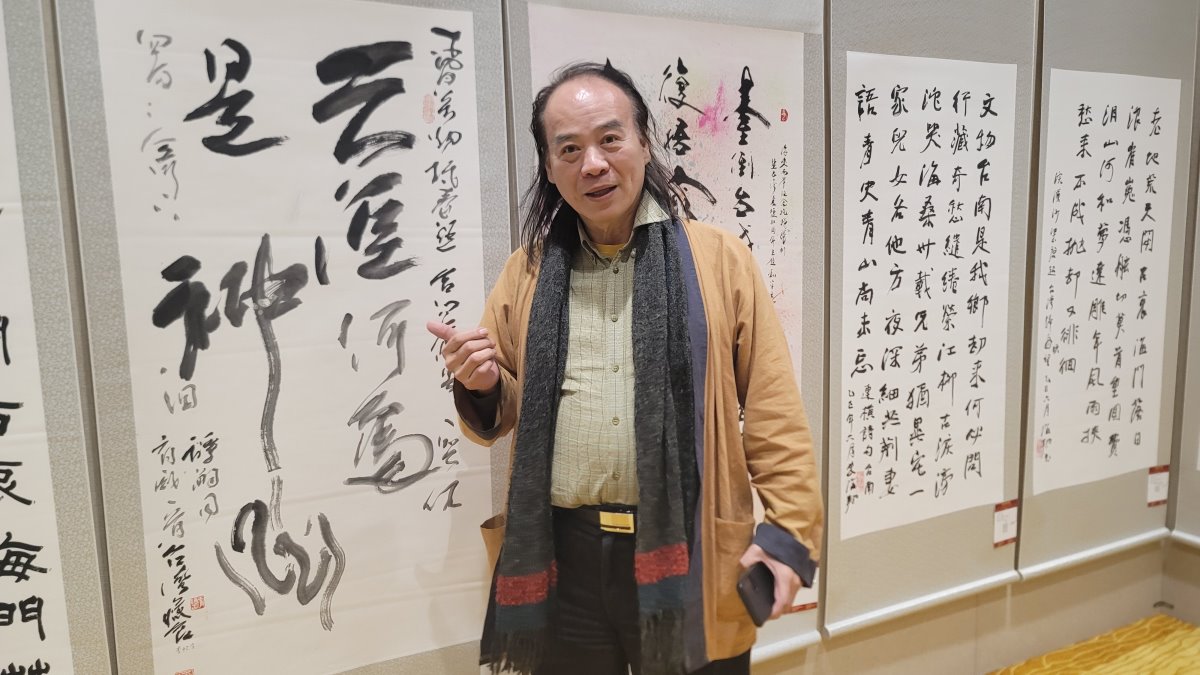 臺灣書畫家歐陽鯤帶來的書畫作品《乙未戰爭》。(歸鴻亭攝影) |