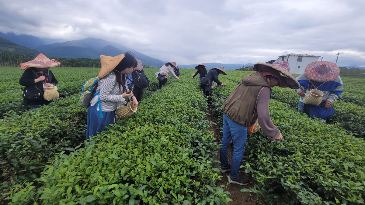 首先體驗採茶樂趣,瑞穗鄉舞鶴村嘉茗茶園的茶園開放遊客採茶,頭戴避免強烈陽光曝曬藍布包成涼帽功能的竹笠,斜背竹茶簍採摘「一心二葉」的茶菁,茶園負責人高肇昫在一旁詳細說明採摘方式,由茶樹最頂端的嫩芽(一心)以及其下方的兩片嫩葉(二葉)組成,是茶葉中最細嫩、品質較優的部分,適合製作高品質的茶葉。