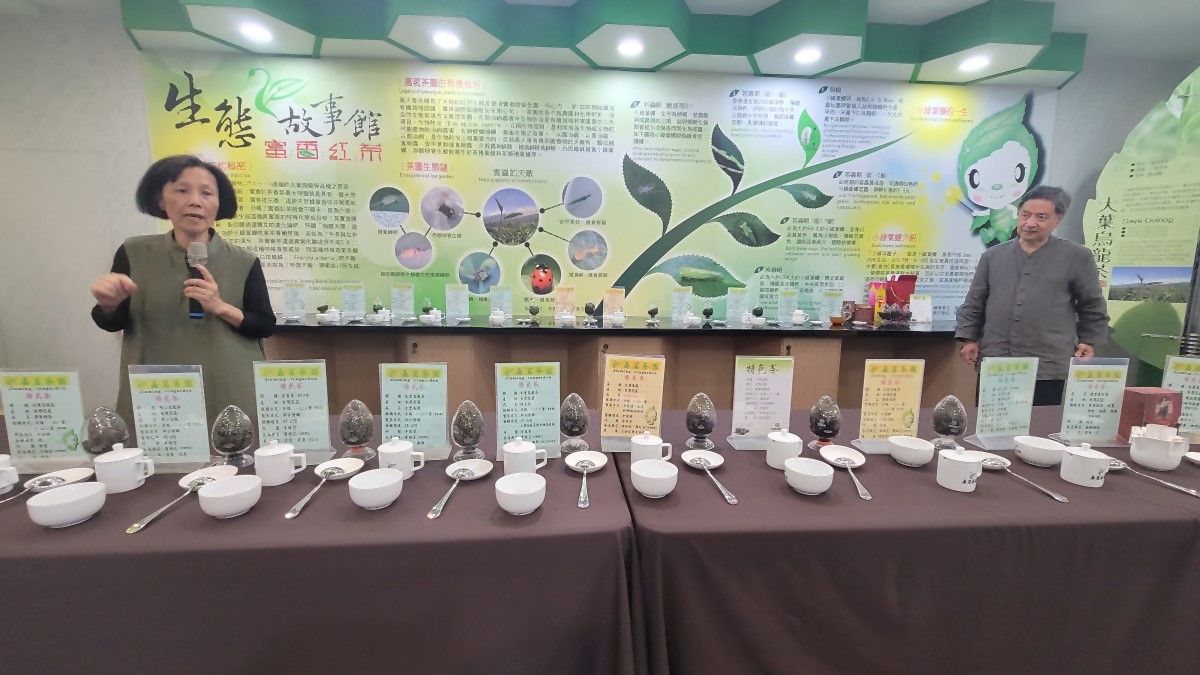 回到嘉茗茶園基地,高肇昫說明30多年從事製茶的工作,創造獨特風格的蜜香紅茶,通常指的是經過小綠葉蟬吸食的茶葉,這種昆蟲的唾液與茶葉產生化學反應,賦予茶葉獨特的蜜香和果香。嘉茗茶園採用有機種植,不施農藥和化肥,強調自然農法,注重傳統製茶工藝,如手工摘採、自然萎凋、適度發酵等,這些步驟會影響茶湯的色澤和口感。