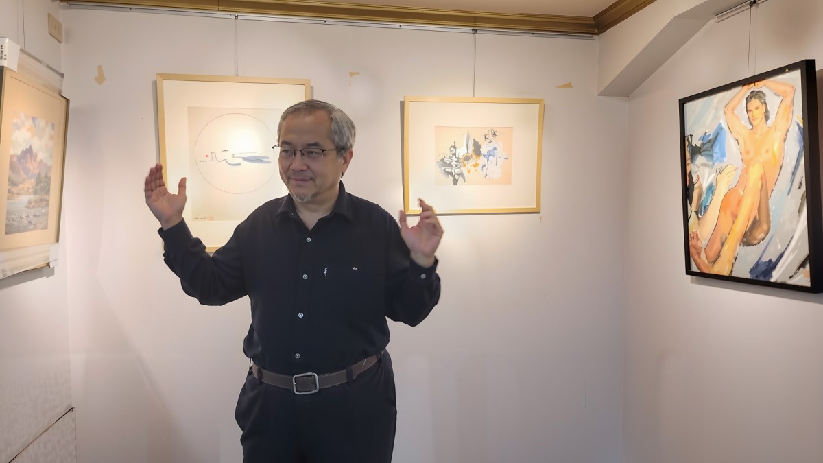 | 「藝術尋寶」張學孔介紹台灣前輩藝術家作品。(歸鴻亭攝影) |