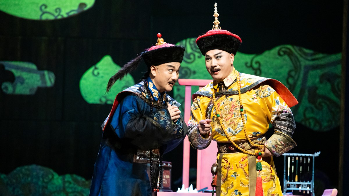 | 唐文華飾乾隆帝(右)、溫宇航飾和珅(左)。(國光劇團提供) |
