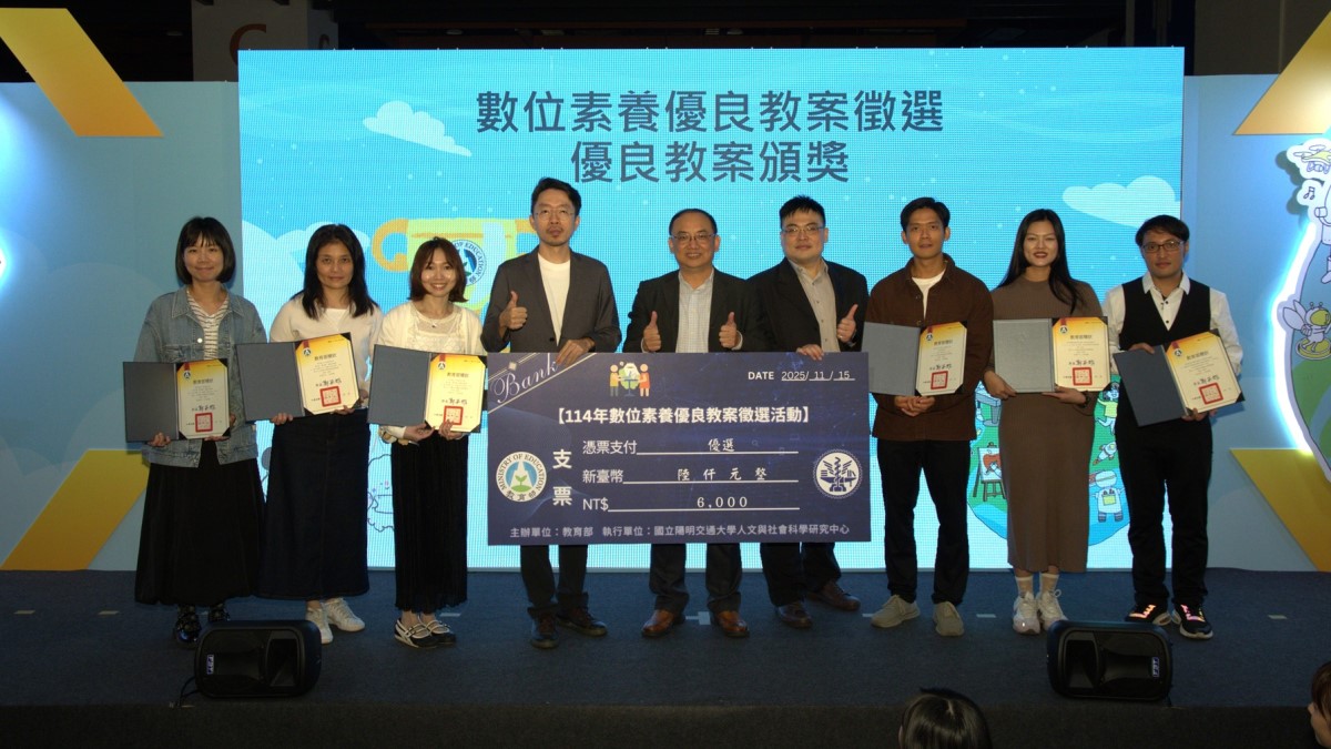 數位素養19件獲獎教案中,獲得特優獎項國立新竹女中許庭嘉老師結合AI於生物科學探究;新竹市光華國中王靜鴻老師將英語教學結合媒體素養辨識假訊息;臺南市賢北國小張志仁老師則帶領學生透過AI共創台語家鄉導覽,探討AI偏見與文化議題,均展現如何培養學生運用科技學習及思辨資訊真偽的能力。