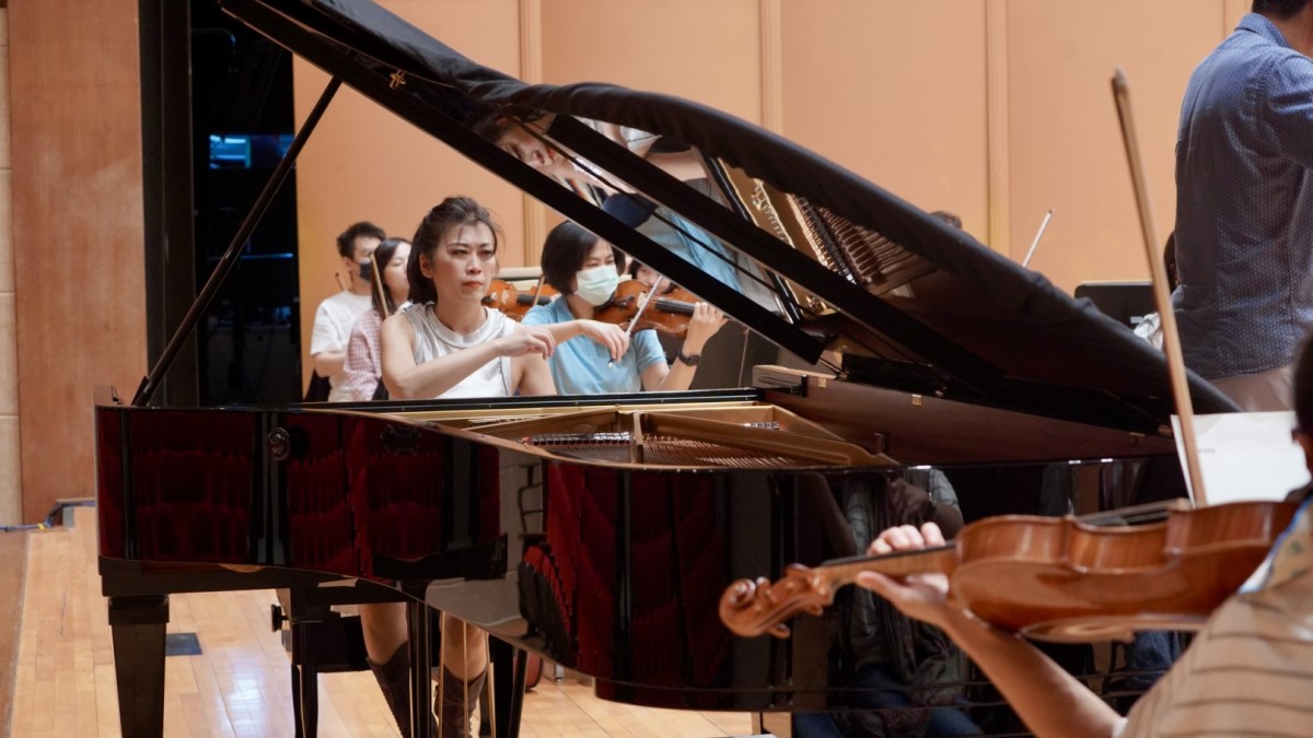 NTSO駐團藝術家陳毓襄排練葛利格鋼琴協奏曲。(國立臺灣交響樂團提供)