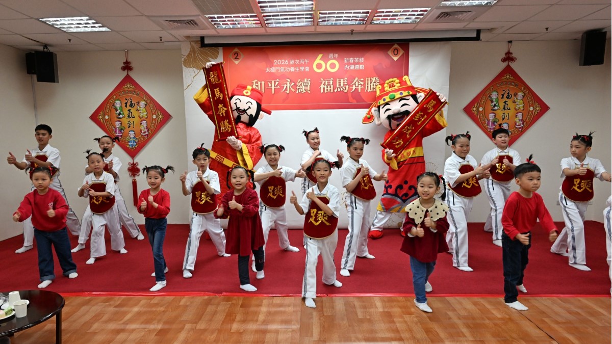 迎接2026丙午馬年,太極門內湖道館今(14)日下午舉辦「和平永續 福馬奔騰」新春茶敍,同時也是太極門氣功養生學會60週年系列活動,超過百位各界貴賓、鄉親好友共同參與,在古文化新生命的氛圍中,透過茶香、展演與智慧分享,為新的一年注入滿滿的好氣與福氣。
