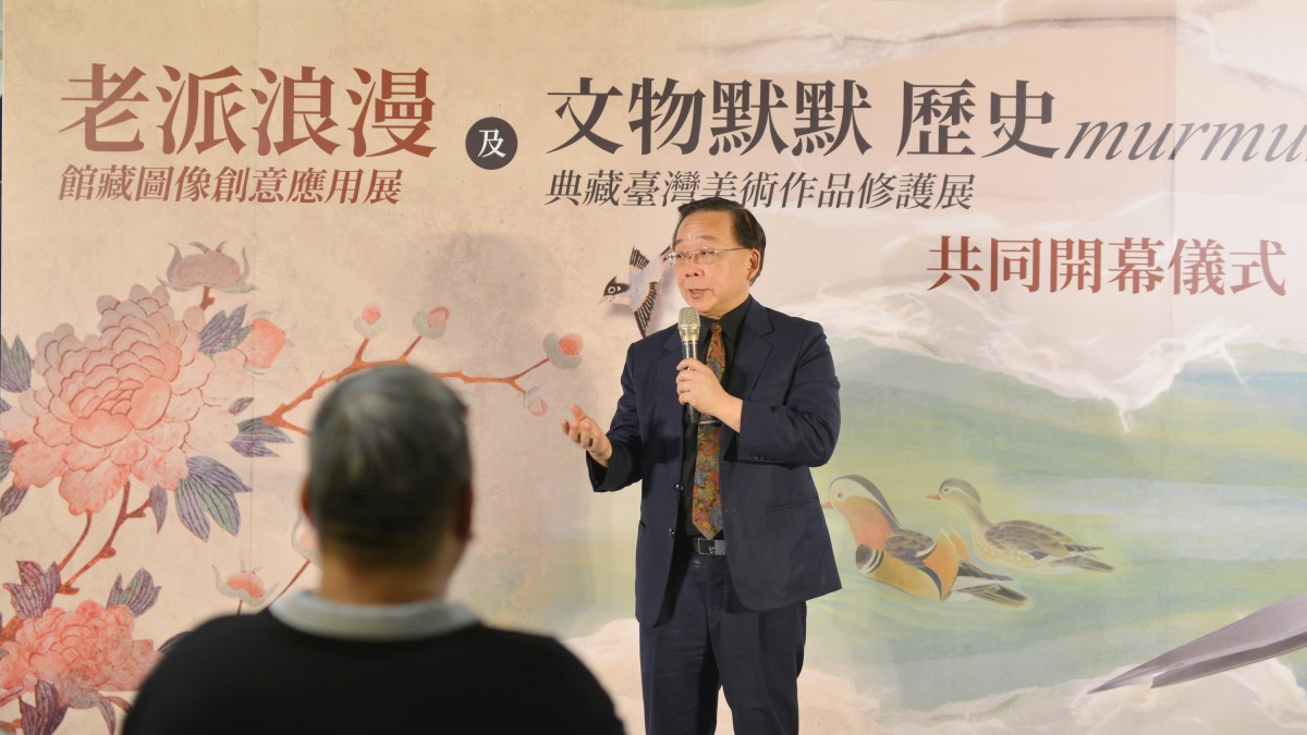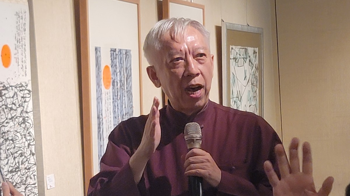 臺灣美術院院士參觀「奇逸融通×戀戀紅塵」雙個展。(歸鴻亭攝影) |