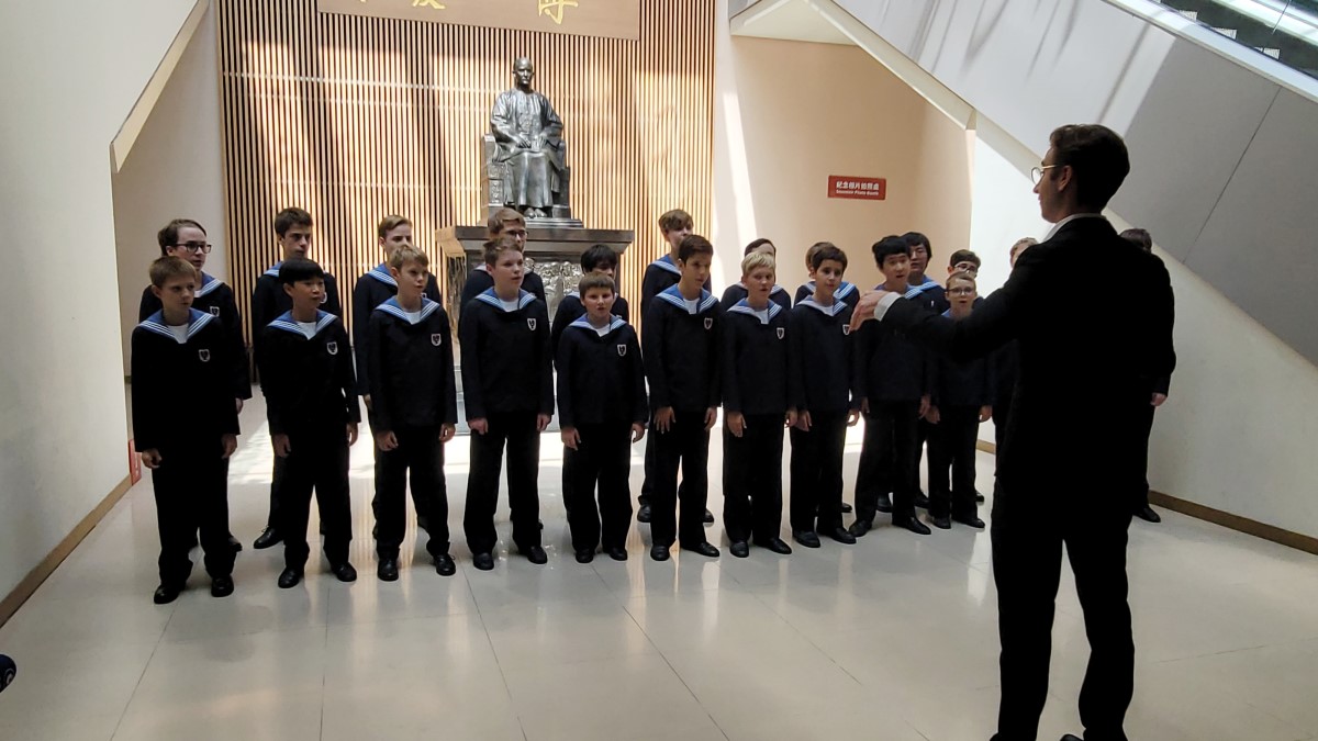 故宮快閃維也納少年合唱團唱了3首曲子。(歸鴻亭攝影) |