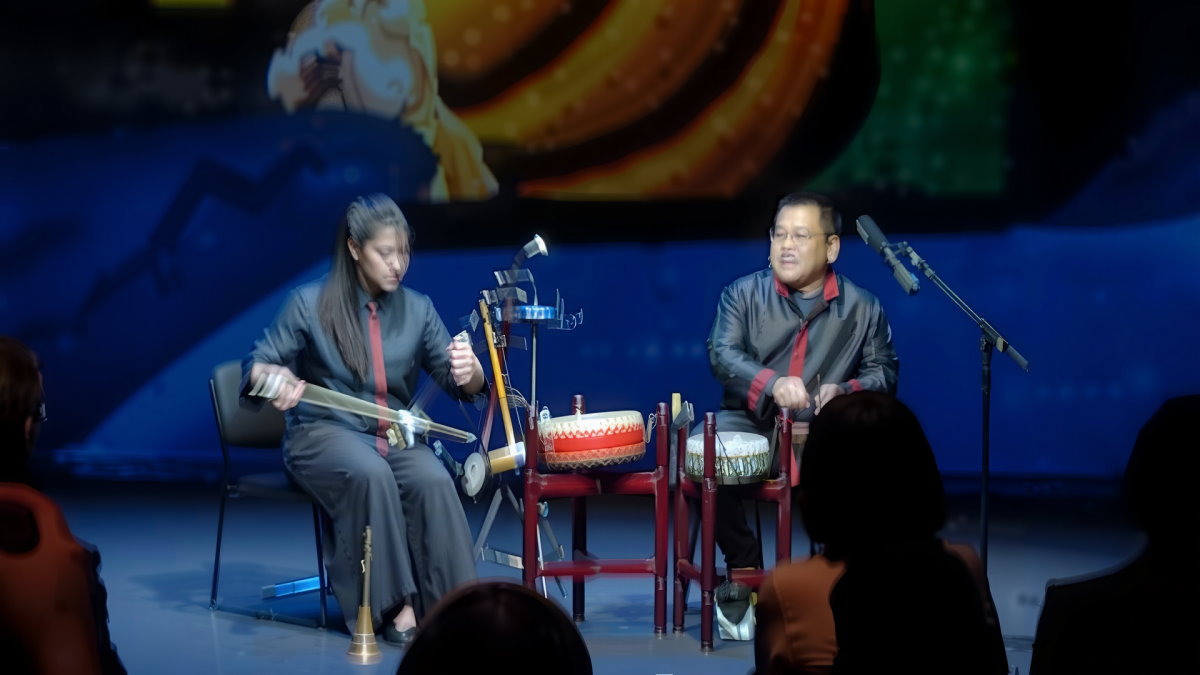 | 第4屆結業習藝生表演臺北木偶劇團的林宸弘與劉士聞共奏布袋戲後場音樂組曲。(錢大同攝影) |