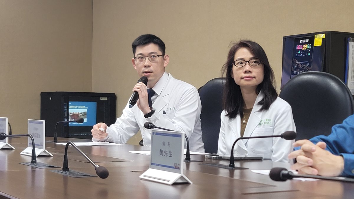 | 王緯歆說明多專科團隊整合搶救腫瘤過程。右為耳鼻喉頭頸外科(鼻科)醫師藍敏瑛。(歸鴻亭攝影) |