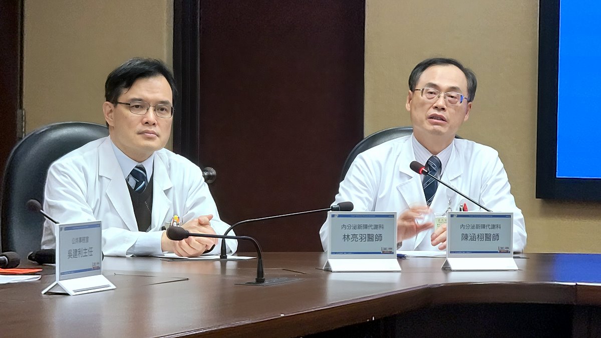 | 內分泌新陳代謝科醫師陳涵栩(右)表示,腦下垂體腫瘤會影響心臟、血糖、視力及生殖功能。左為林亮羽醫師。(歸鴻亭攝影) |