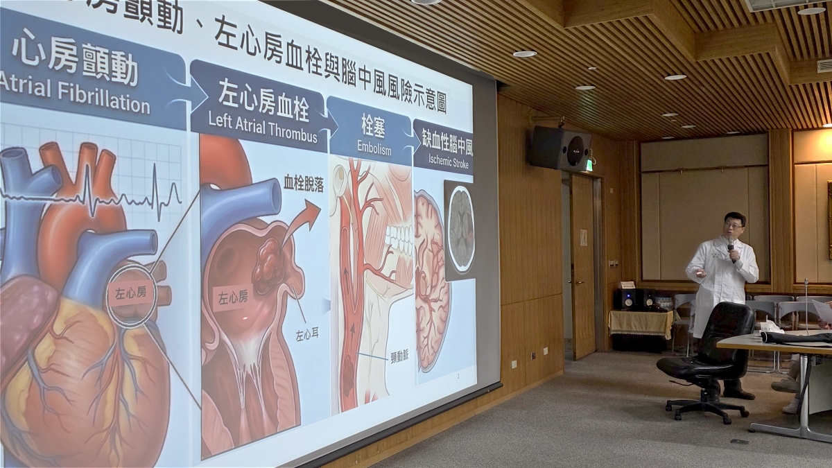 | 賴超倫指出,抗凝血治療雖能降低中風風險,卻同時增加出血風險,因此如何精準評估個別病人的中風風險,成為臨床決策的核心。(歸鴻亭攝影) |