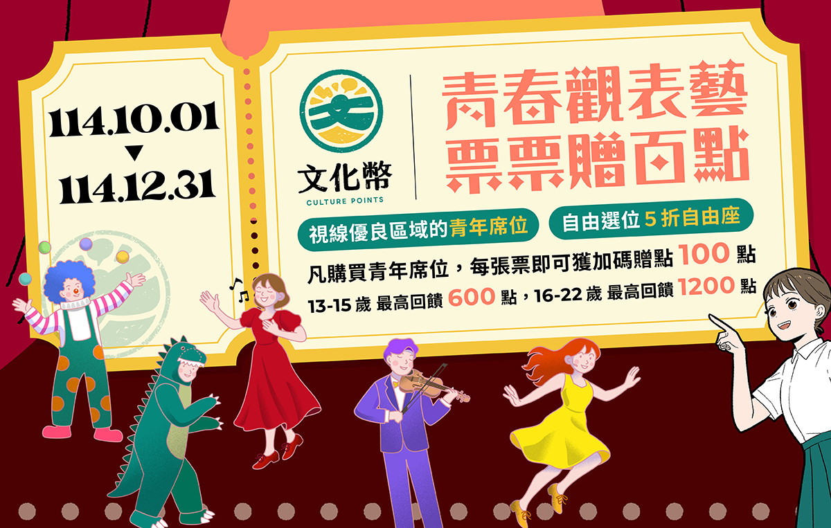 文化幣"表演藝術青年席位"超值加碼 每張票再回饋100點