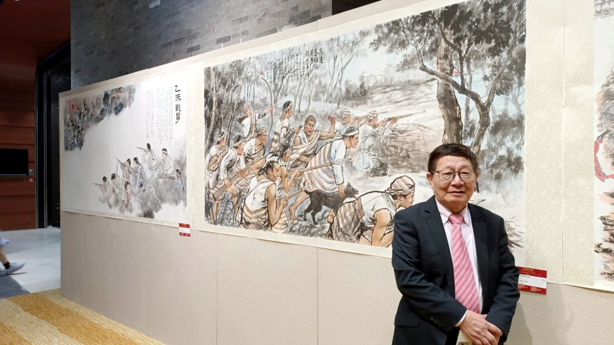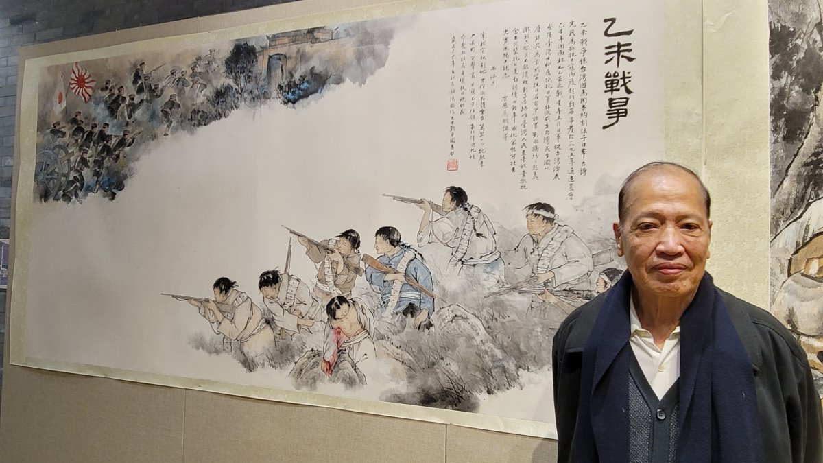 臺灣書畫家歐陽鯤帶來的書畫作品《乙未戰爭》,描繪清朝《馬關條約》簽訂後1895年被迫將臺灣割讓給日本帝國 時,所發生的一連串反抗日本統治的大小戰役之總稱,同時也是臺灣歷史上規模最大的一次戰爭,臺灣漢人在日軍登陸後奮起抵抗,長達6個月,共1萬4千名士兵戰死的一幕戰鬥景象。