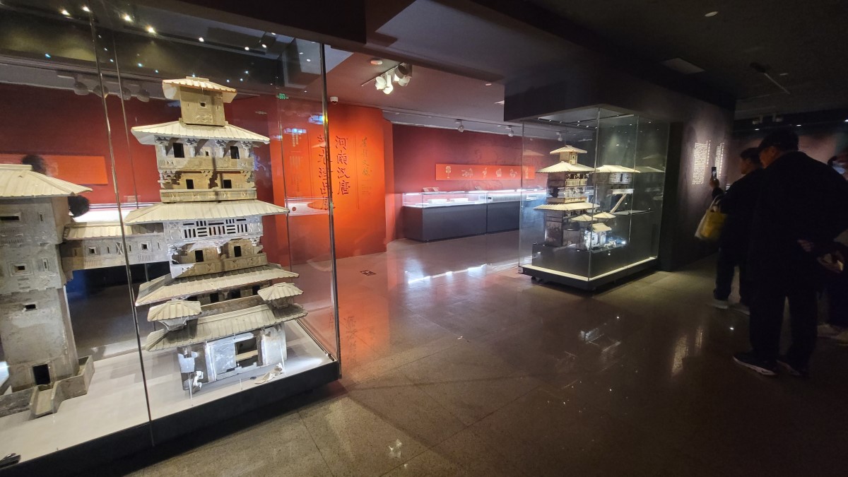 樓上另有《墨韻文脈—河南漢唐藝術珍品展》,不同於前3檔均為現代展,在臺灣基本上是會在國父紀念館展出,漢唐展明顯就是考古出土的古代展,台灣則較可能歷史博物館出現。彙集河南12家文博單位的130餘文物及相關展品,擺在進門處的兩個東漢中期出土陶質建築明器五層彩繪陶倉樓與七層連閤式彩繪陶倉樓為研究漢代建築形制與喪葬文化提供了實物依據。