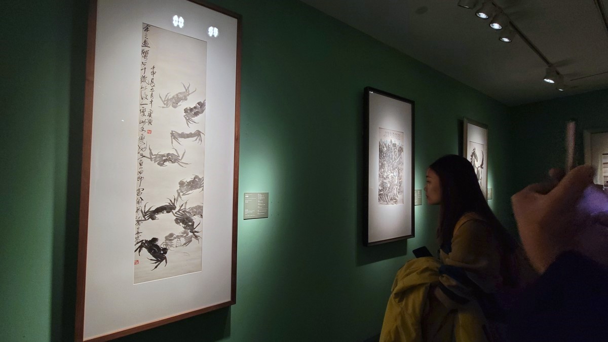 | 藏寶閤現場觀眾細品齊白石的<螃蟹>。(歸鴻亭攝影) |