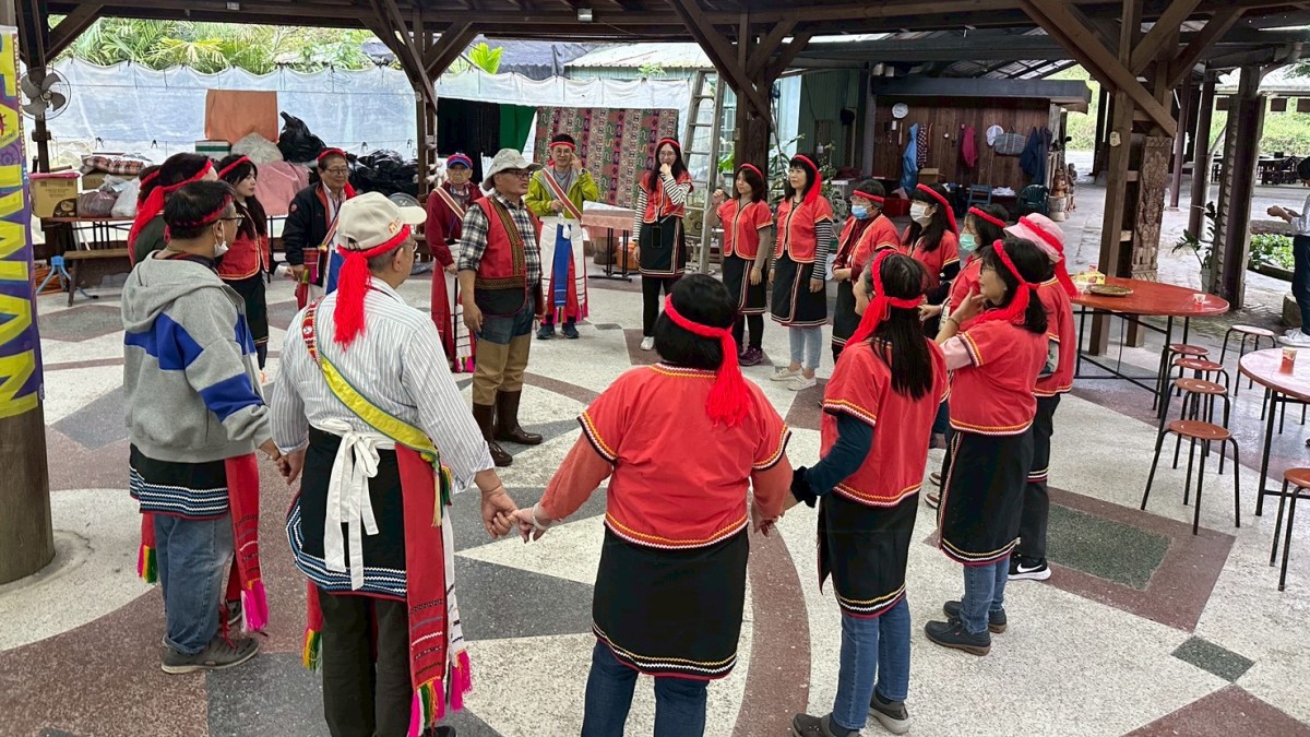 | 客身穿阿美族服飾跳豐年祭舞蹈。(歸鴻亭攝影) |