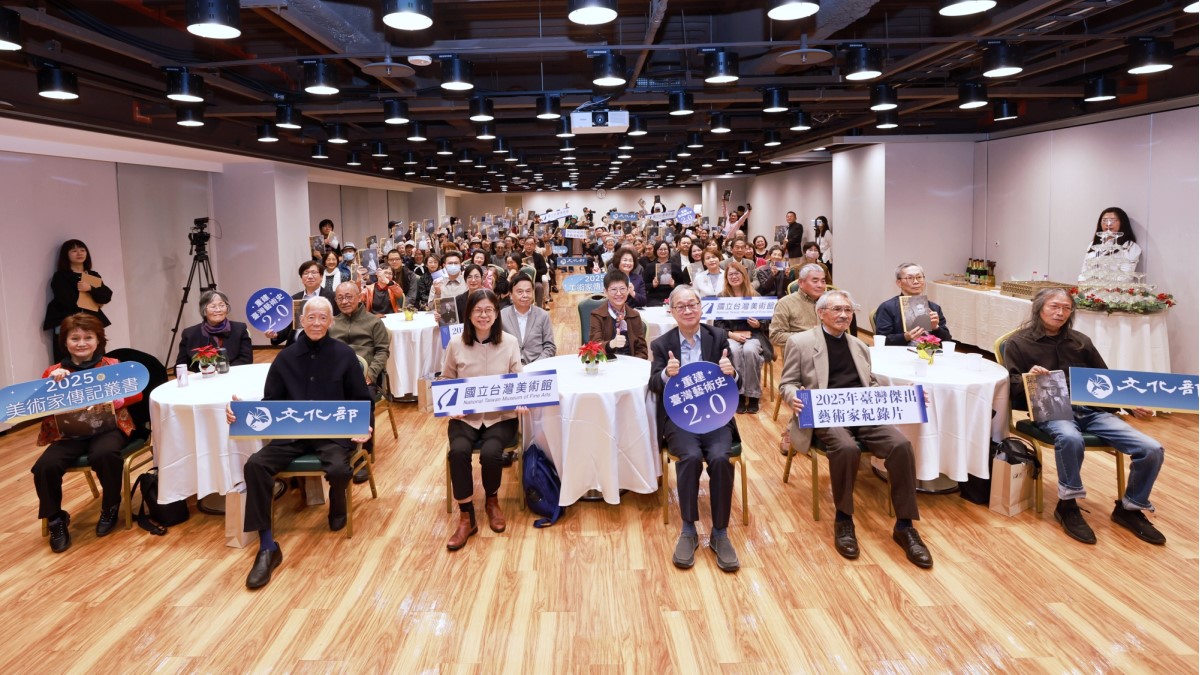 2025年「家庭美術館—美術家傳記叢書」與「臺灣傑出藝術家紀錄片」新書‧影音聯合發表會大合照。(歸鴻亭攝影)
