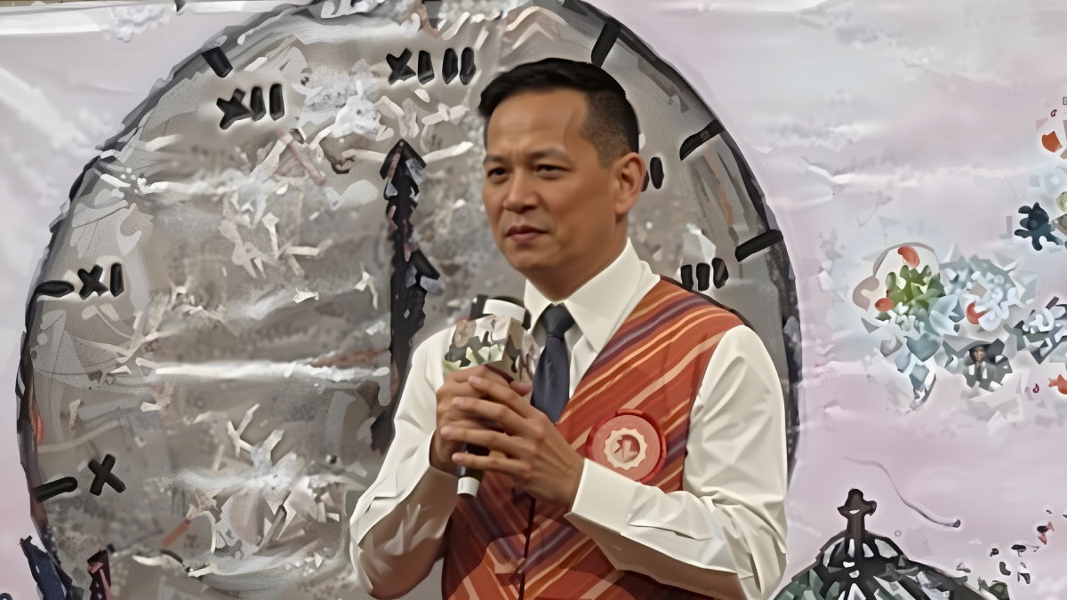 | 新竹縣泰雅學堂教育協會理事長陳智明說明感恩音樂會意義。(歸鴻亭攝影) |