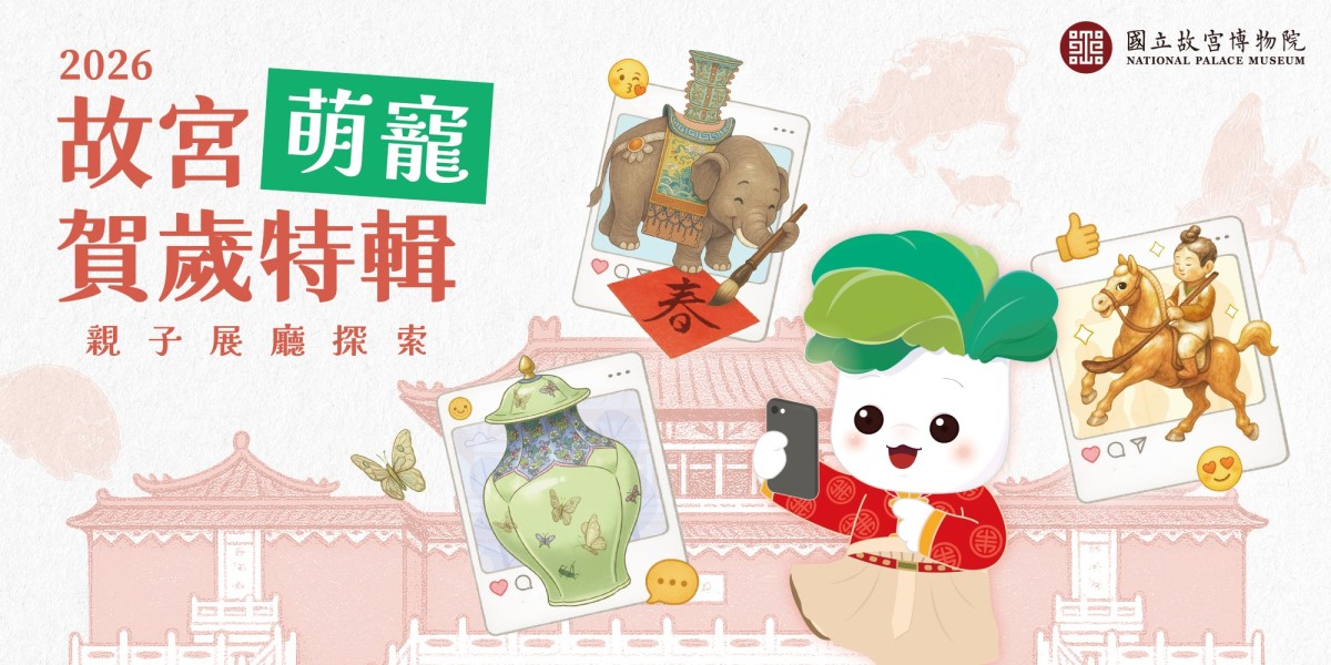 國立故宮博物院推出「故宮萌寵賀歲特輯」親子展廳探索活動,串聯當期「動物為伴」、「巨幅名作」、「摶泥幻化」、「愛硯成痴」、「集瓊藻」等展覽選件,設計8道關卡,邀請民眾以遊戲互動方式探索故宮文物。