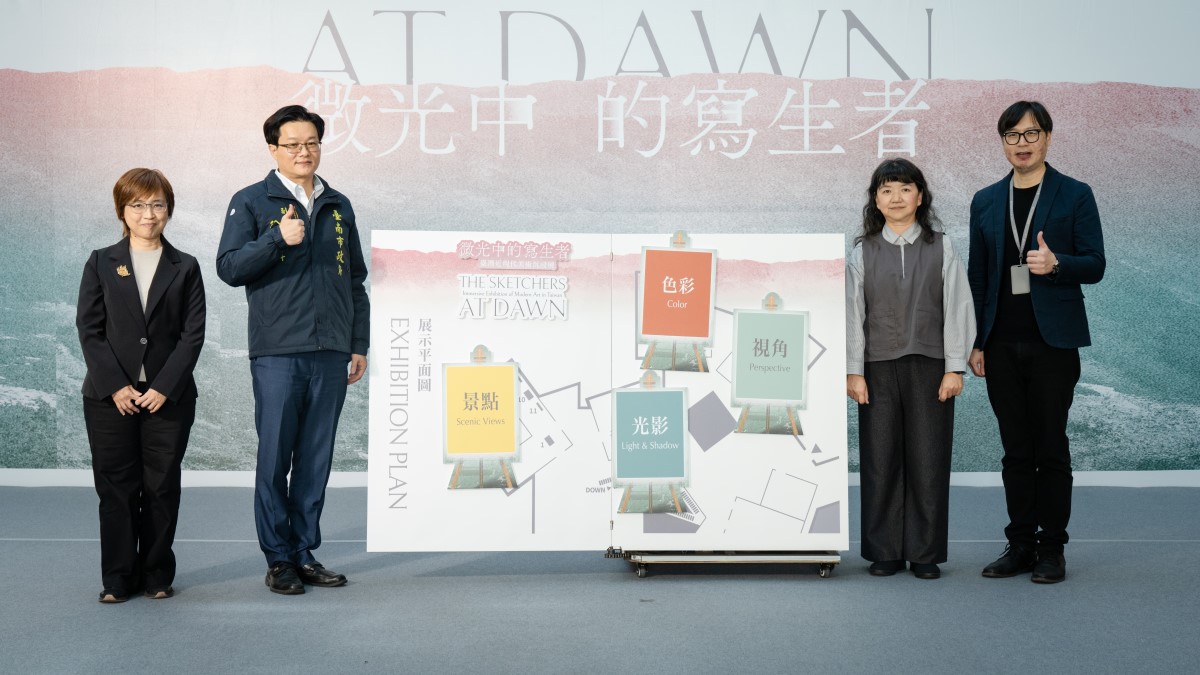 | 「微光中的寫生者—臺灣近現代美術沉浸展」展覽開幕式貴賓合影。(文化部提供) |