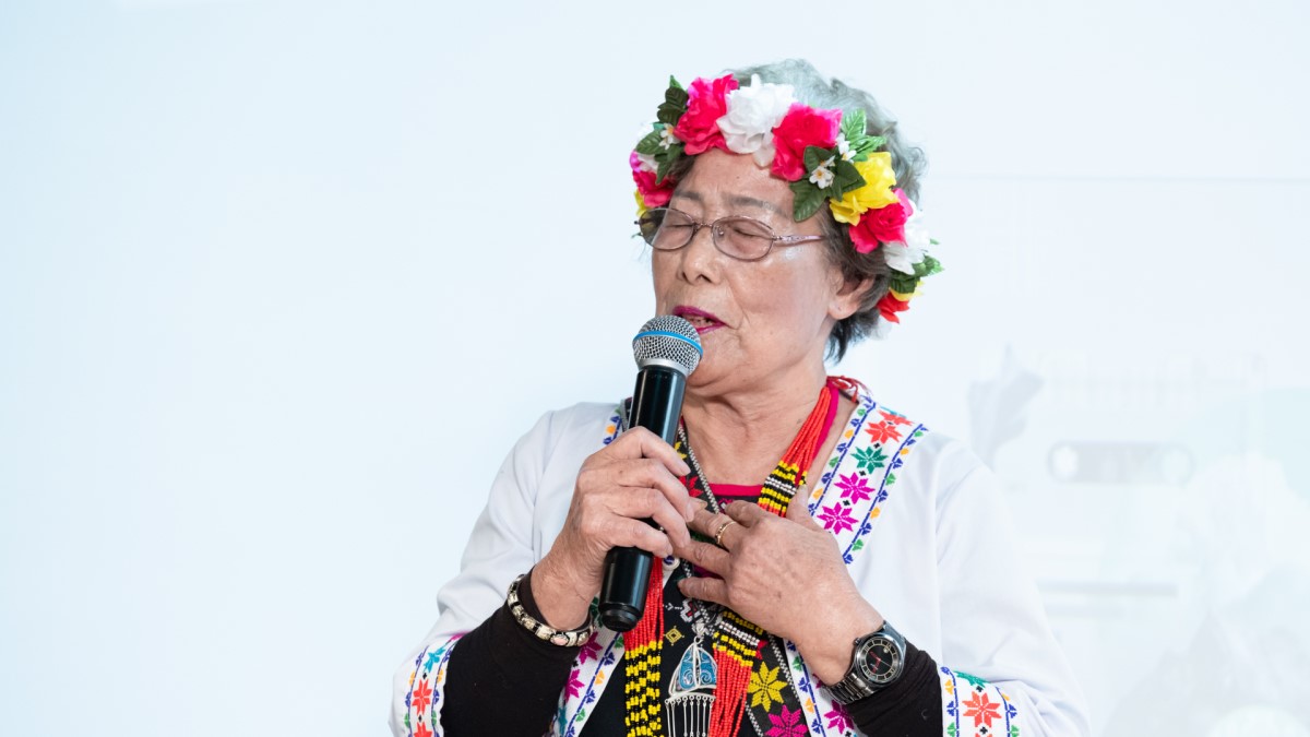 吳花枝以清唱重現第一張原住民黑膠唱片中的歌曲。(臺灣音樂館攝影)