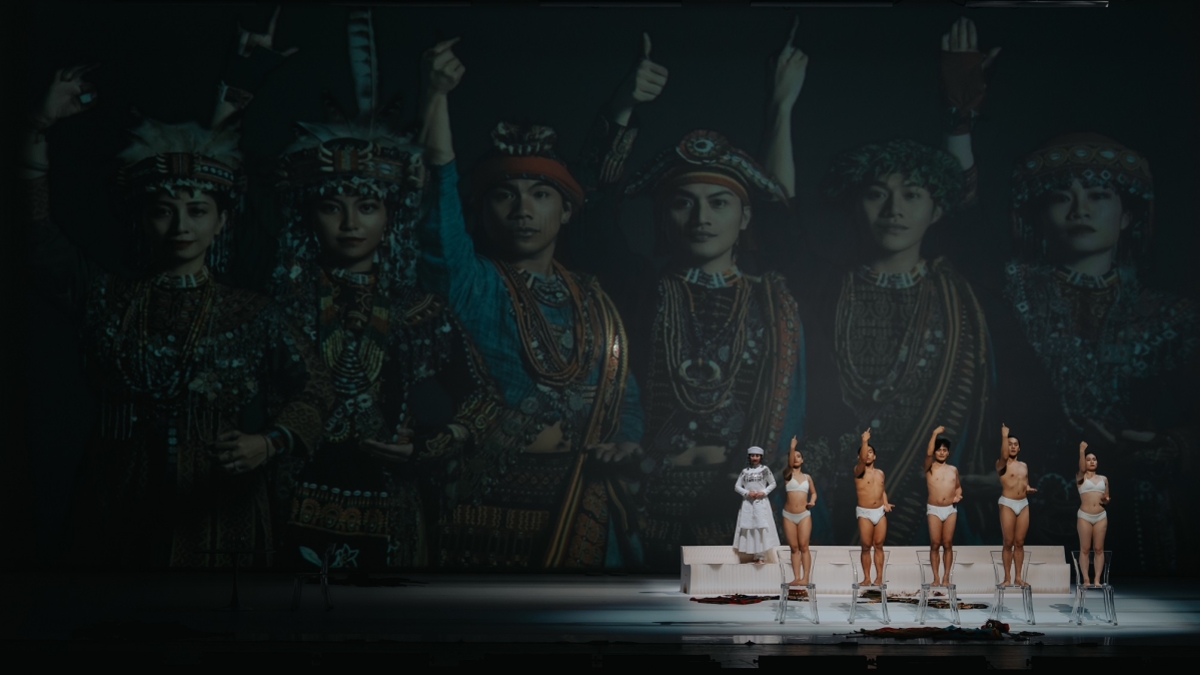 「純白櫥窗」源自當代社會的敏銳觀察,世界彷彿是一座大型動物園,每個人在社會期待的注視下,往往不自覺地成為被展示的客體。作品名稱刻意將排灣的「灣」改寫為彎曲的「彎」,英文名則以Xaiwan Utopia稱呼,是對身分認同投下的詰問,而舞者褪下並高掛的傳統華麗族服,是一場脫去刻板印象的儀式。