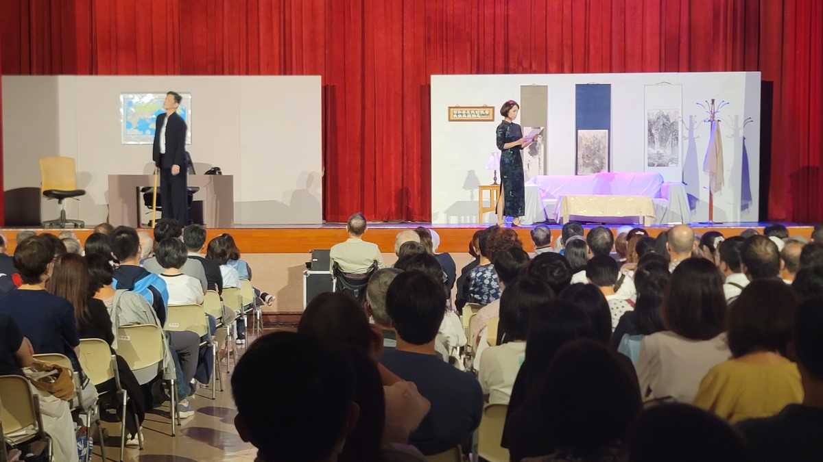 觀賞這部在沒有劇場專業舞台條件下的演出,彷彿回到上一世紀的話劇表演,只有簡單單幕分隔兩個場景,靠燈光暗場與幕間音樂分場,錢大同集編導演一身的能耐,將約100分鐘的演出不論前場接待到幕後工作換景調度得十分到位,讓現場井然有序。