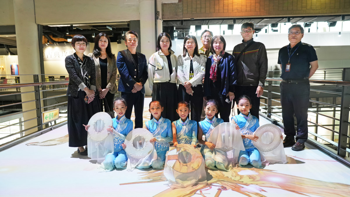 為推動典藏再詮釋與數位藝術創新應用,國立臺灣美術館以館藏經典作品為核心,推出《秋江冷豔・步步生花》VR藝廊空橋互動投影及AR共創體驗,今(27)日舉辦啟動儀式,由國美館長陳貺怡主持,特別邀請郭雪湖基金會顧問謝筱玫、林晉如;VR望鄉三態導演張文杰、國立臺中科技大學設計學院院長蔡子瑋、彰化育英國小訓導主任劉明山等人蒞臨現場,共同見證科技與藝術融合的新篇章。